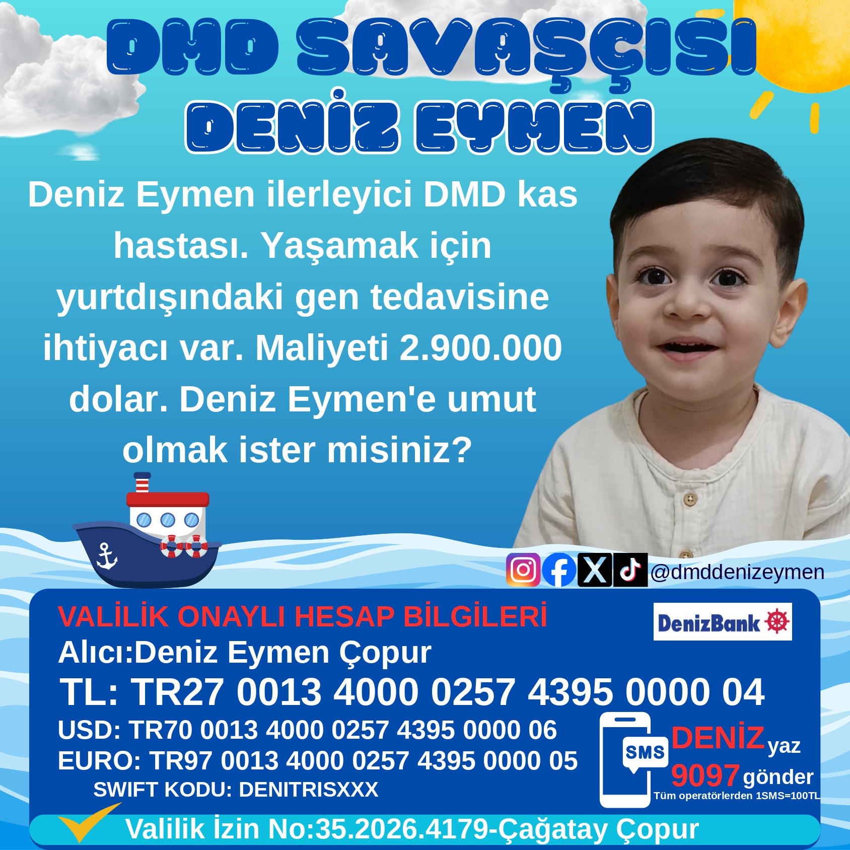 Deniz Eymen’in annesi Sahra Çopur, hastalığın beklenmedik bir şekilde ortaya çıktığını belirtti. Henüz 5 aylıkken yapılan rutin kontrollerde karaciğer enzimlerinin yüksek çıkması üzerine yapılan ileri testler sonucunda DMD teşhisi konuldu.