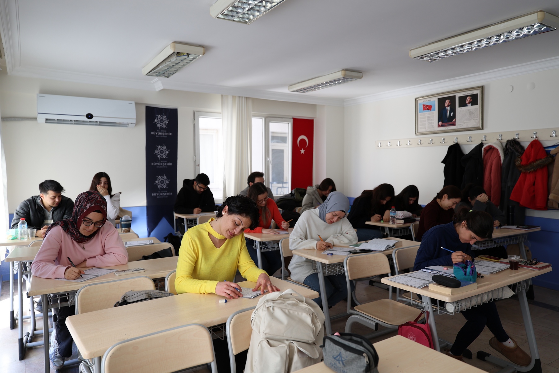 Büyükşehir Belediyesi 100. Yıl Gençlik ve Kültür Merkezi’nde ücretsiz olarak verilen Kamu Personeli Seçme Sınavı (KPSS) hazırlık eğitimleri, gençlerin yoğun katılımıyla sürüyor.