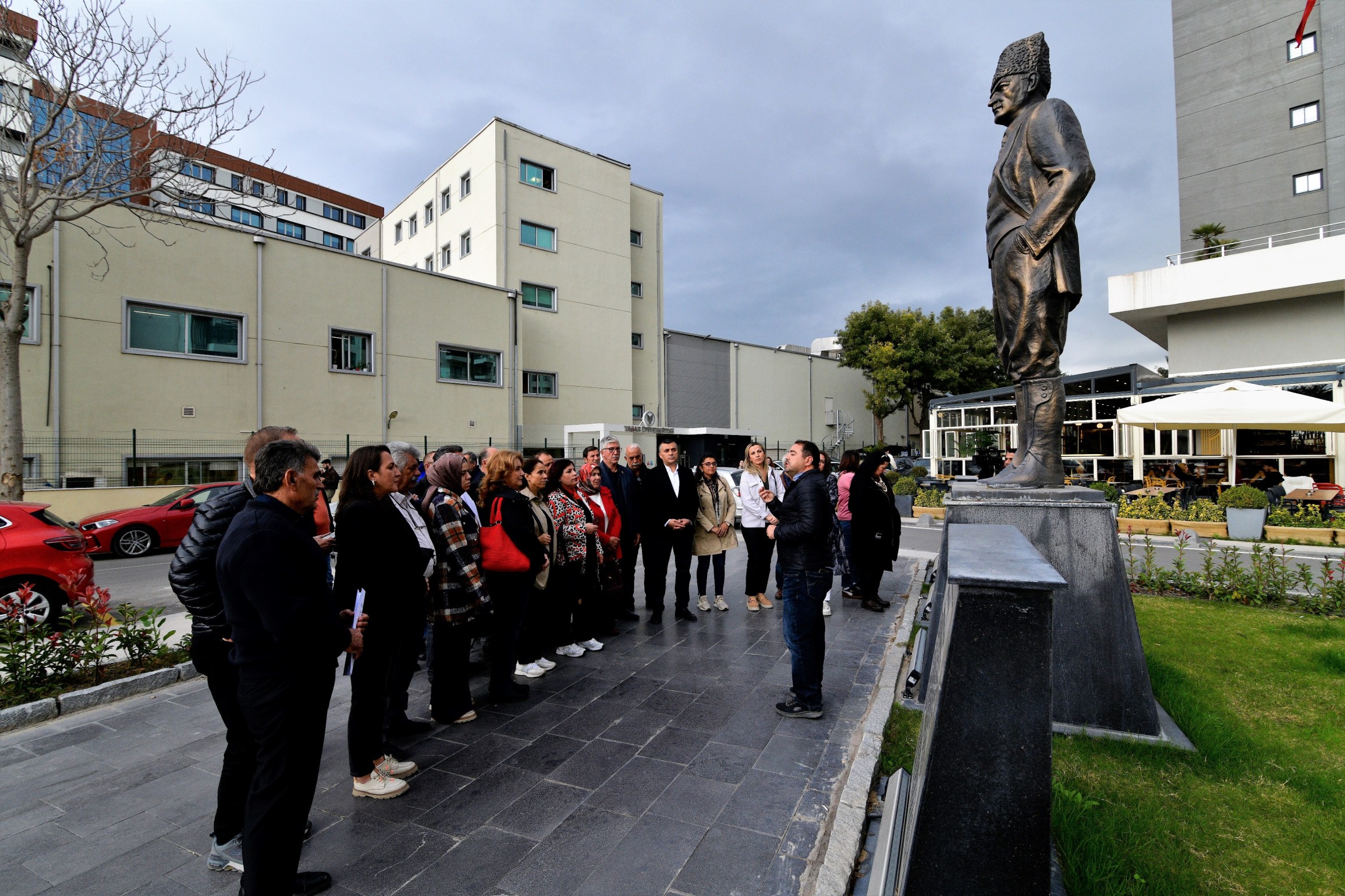 Bornova Muhtarlar Akademisi kapsamında muhtarlar, Abide-i Hürriyet Meydanı’nı rehberler eşliğinde gezdi.