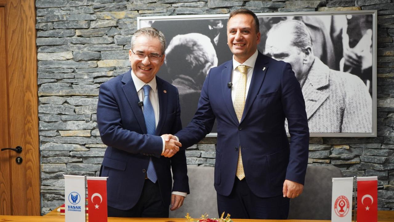 1. Bornova Belediye Başkanı Ömer Eşki ile Yaşar Üniversitesi Rektör Yardımcısı Prof. Dr. Yiğit Kazançoğlu, sürdürülebilir atık yönetimi protokolünü imzaladı.