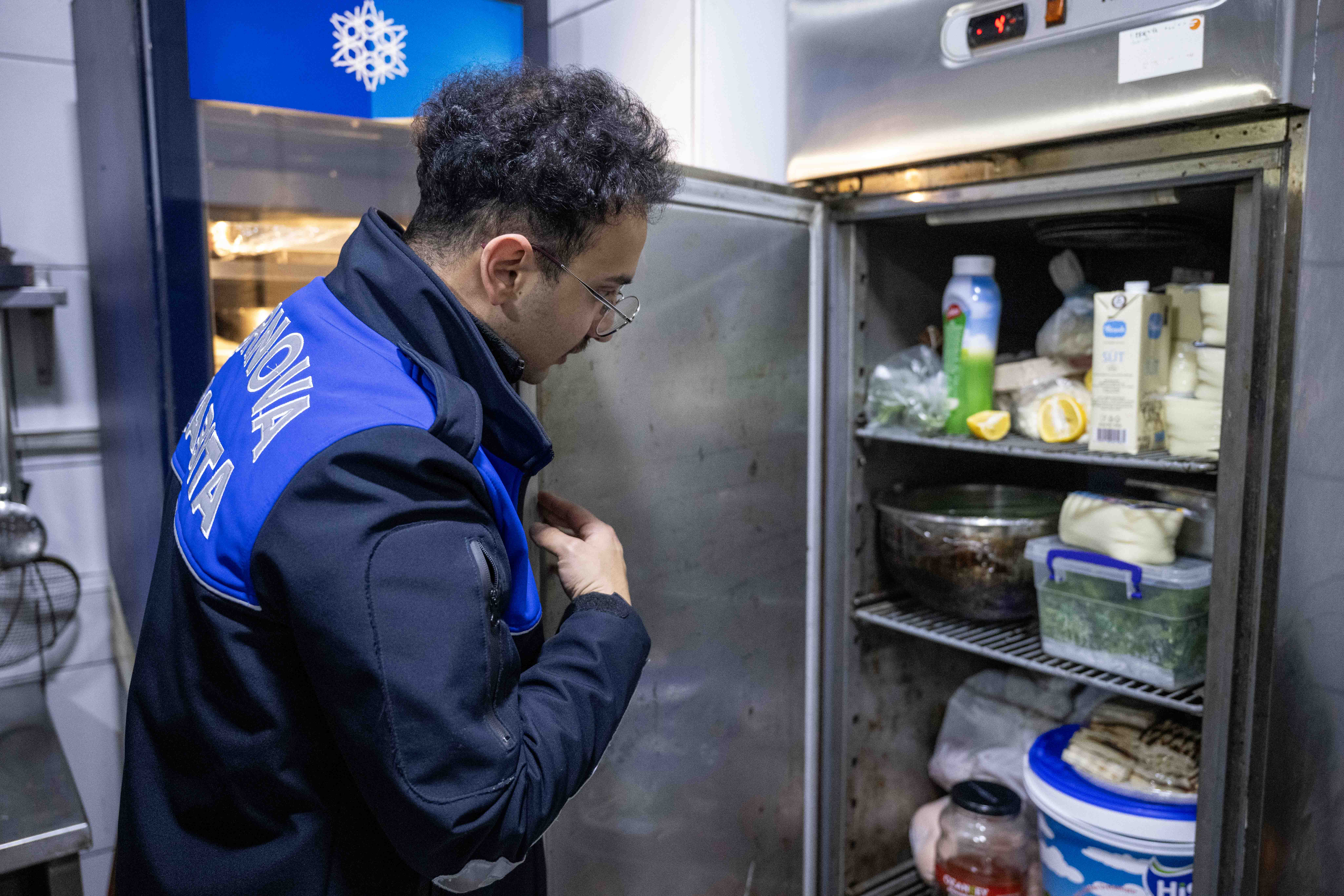 Bornova Belediyesi zabıta ekipleri ve gıda mühendisleri, yılbaşı öncesi işletmelerde hijyen ve ruhsat denetimi gerçekleştirirken.