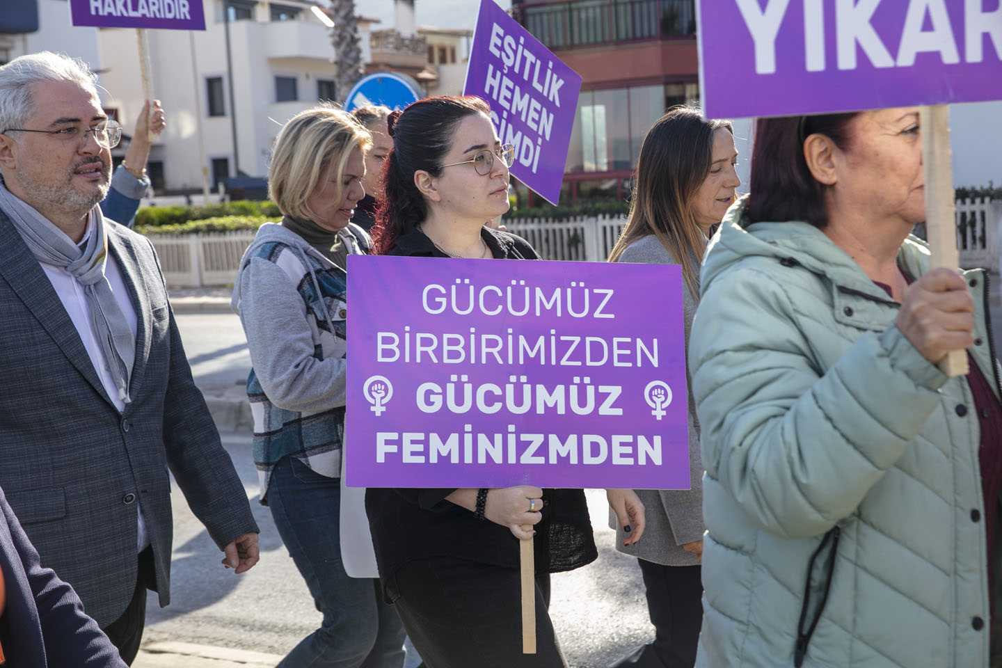25 Kasım Kadına Yönelik Şiddetle Uluslararası Mücadele Günü kapsamında Güzelbahçe Belediyesi öncülüğünde, basın açıklaması yapıldı. Basın açıklamasının ardından katılımcılar kadına yönelik şiddete karşı Mithatpaşa Caddesi’nde yürüyüş yaparak slogan attı ve kadın esnafları ziyaret etti.