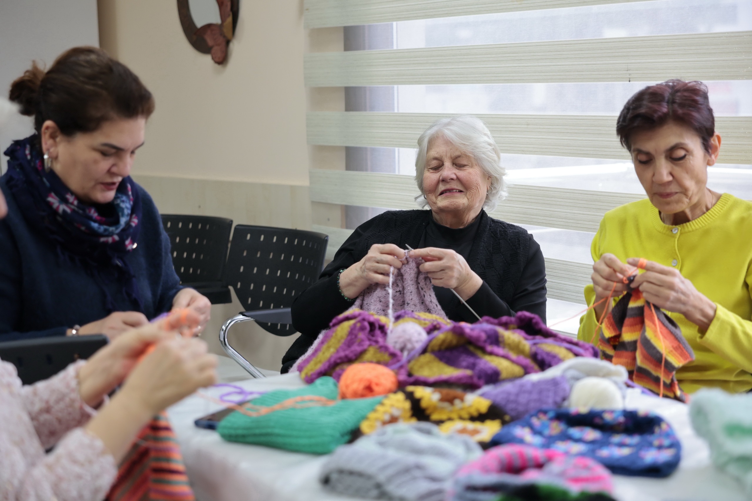 Ziya Zişan Saadet Aytulun Kardeşler İleri Yaş Sağlıklı Yaşam Merkezi, örgü sınıfı kursiyerlerinin oluşturduğu sevgi ağının devamlılığı ve büyümesi için örgü ipi ve yün bağışı yapmak isteyenler, merkezin (0232) 445 43 20 numaralı telefonunu arayarak detaylı bilgi alabiliyor.