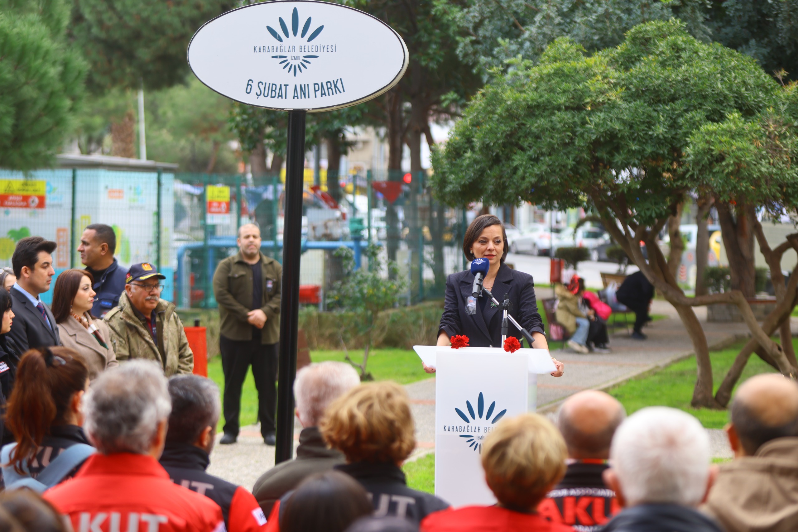 Karabağlar Belediyesi tarafından hayata geçirilen 6 Şubat Anı Parkı, depremin yıl dönümünde duygu dolu bir anma törenine ev sahipliği yaptı.