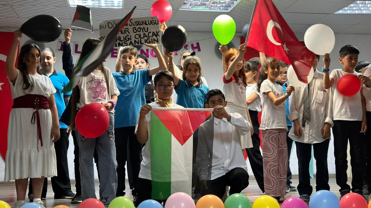 Okulun konferans salonunda gerçekleştirilen etkinlikte, öğrenciler yıl boyunca öğrendiklerini yaratıcı sunumlar, skeçler ve şarkılarla sergiledi.