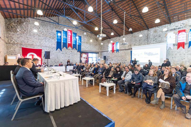 İzmir Büyükşehir Belediye Başkanı Dr. Cemil Tugay, İzmir’in tarımsal kalkınma potansiyeli yüksek, bu yönüyle tarım açısından da önemli bir kent olduğunu söyledi. Kentte tarımın uzun süredir planlama konusunda kendi hâline bırakıldığını belirten Başkan Tugay, iklim krizi ile ülke ekonomisindeki gelişmelerin tarım üzerinde ciddi baskı oluşturduğunu ifade etti. Bu durumun üreticileri zorladığına dikkat çeken Tugay, “Bunu bir kader olarak kabul etmeyelim. Sizlerle birlikte değerlendirip daha iyisini yapmak için bir araya geliyoruz. Bu, usulen yapılmış bir toplantı değil. Görüşleriniz doğrultusunda üreticilerimize daha güçlü destek vermek istiyoruz” dedi.