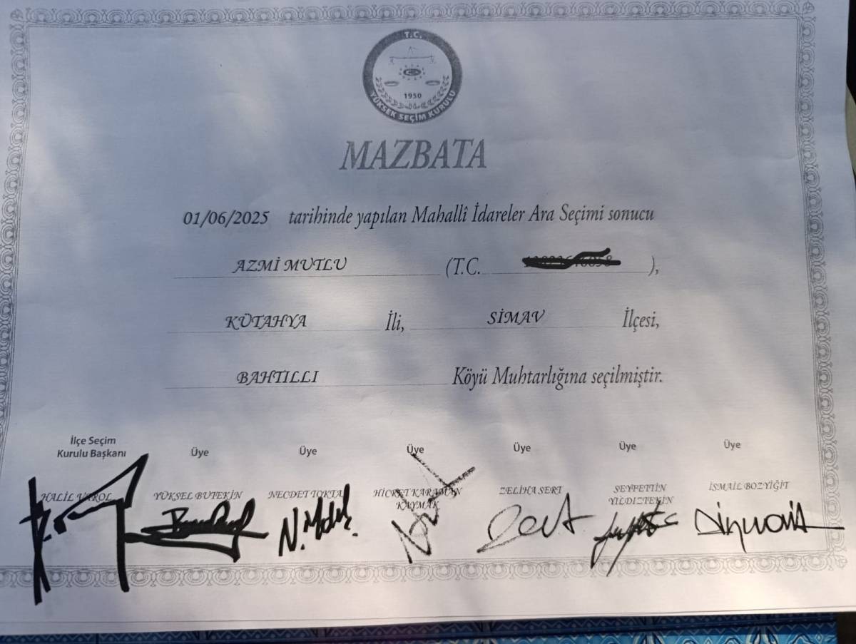 Kütahya’nın Simav’a bağlı Bahtıllı Köyü, son bir yılda üst üste yapılan üç muhtarlık seçiminin ardından nihayet istikrara kavuştu. Daha önce iki kez sandıktan birinci çıkmasına rağmen çeşitli nedenlerle mazbata alamayan Azmi Mutlu, 1 Haziran 2025 tarihinde gerçekleştirilen üçüncü seçimde yeniden büyük farkla seçildi ve bu kez mazbatasını resmen teslim aldı.